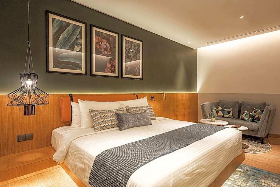 A diverse lineup of room types is offered, including Studio Executive, Deluxe, Premier King Room, and various 2-bedroom configurations such as Executive Loft, Deluxe Suite, and Premier 2 Bedroom Suite. Payment is cashless, with Mastercard, Visa, and UnionPay accepted.